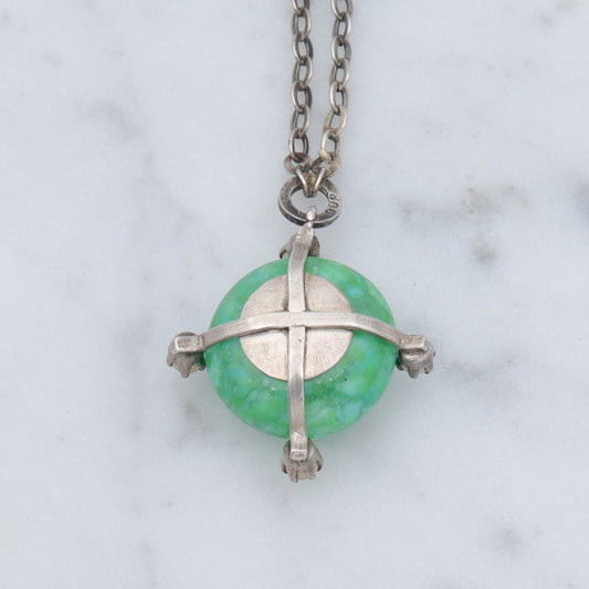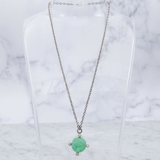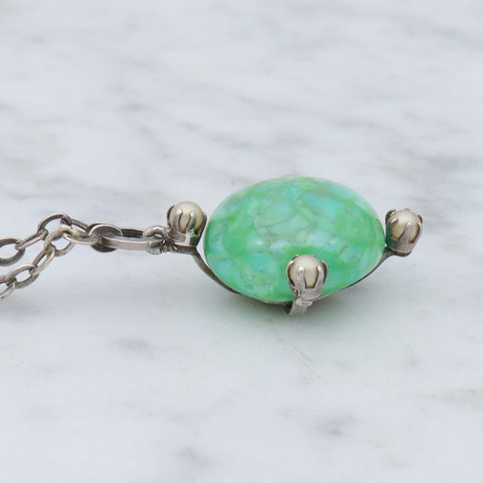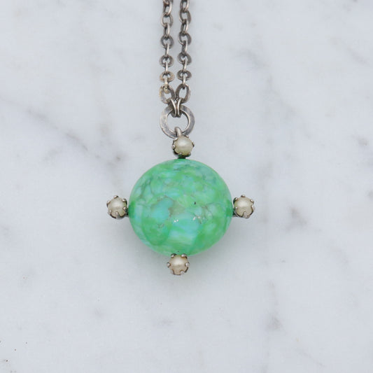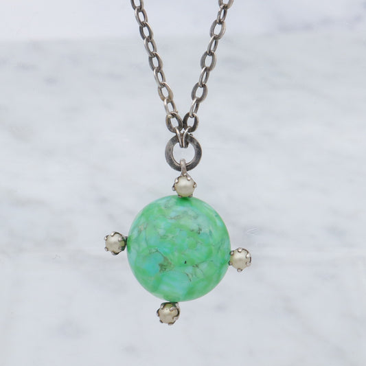 Antique hand blown glass & faux pearl sterling pendant choker necklace