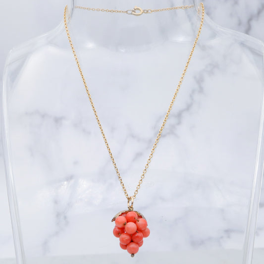 Antique gilt metal coral bead grape bunch pendant