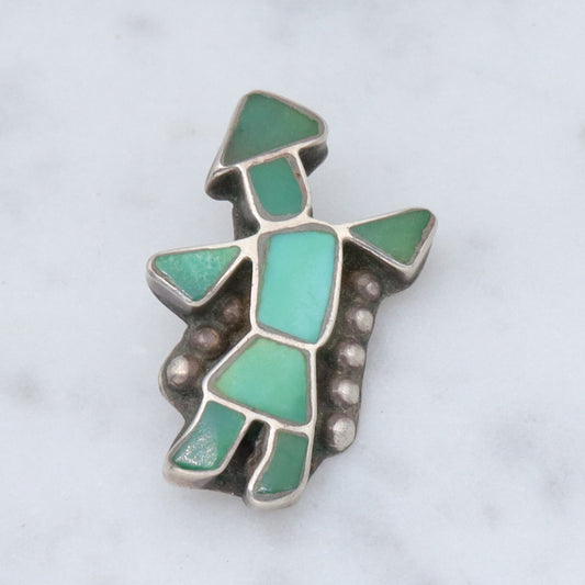 Vintage Zuni sterling green turquoise inlay Kachina Dancer pendant