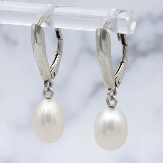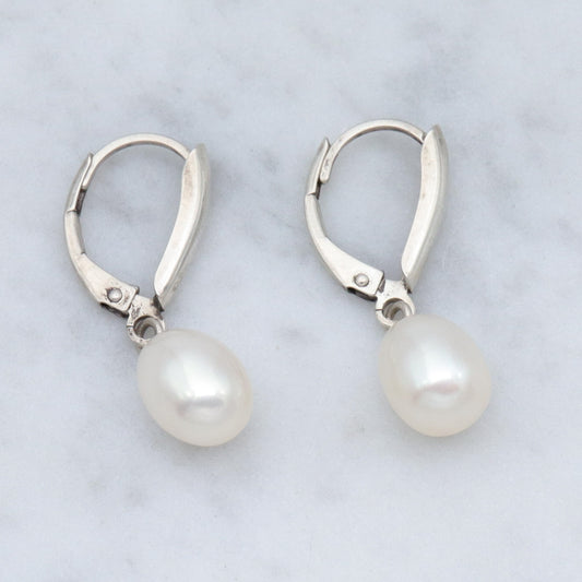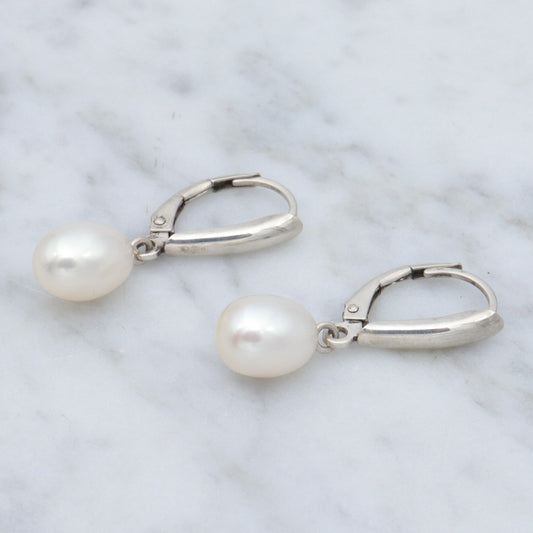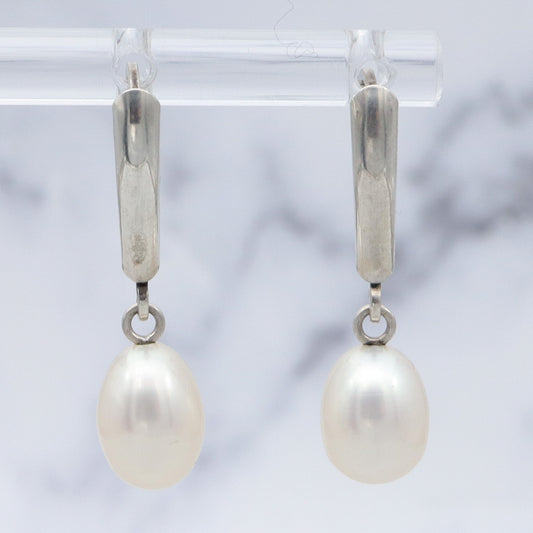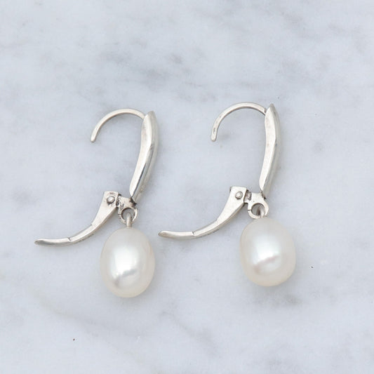 Vintage Honora sterling & oval pearl drop earrings