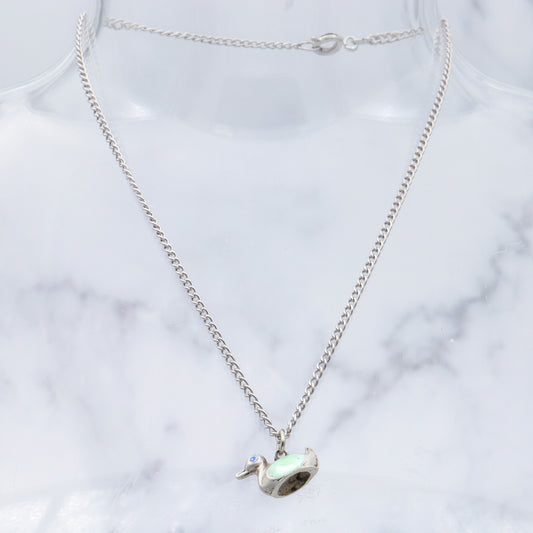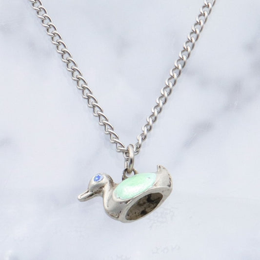 Antique sterling & enamel figural duck pendant