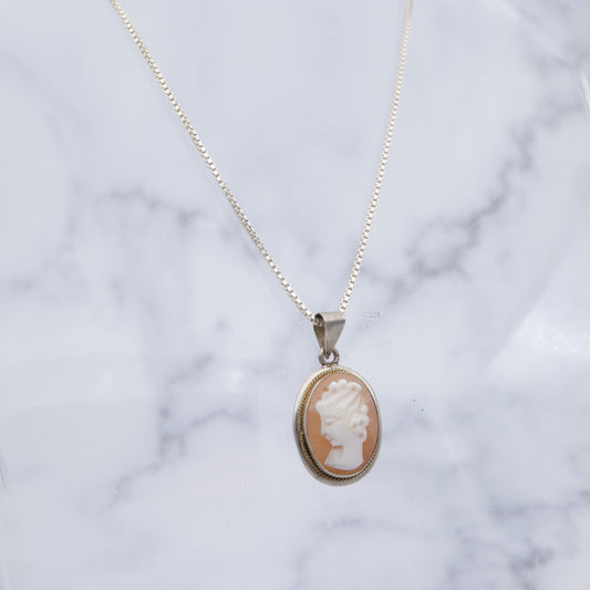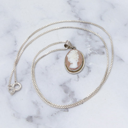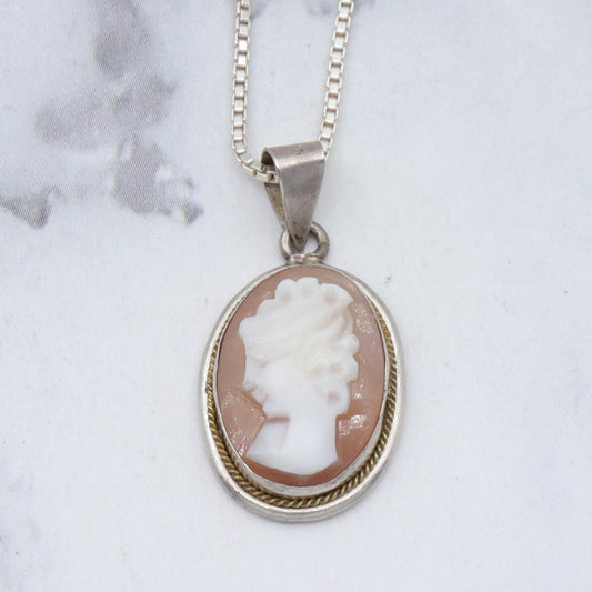 Vintage sterling shell cameo pendant necklace, 18"
