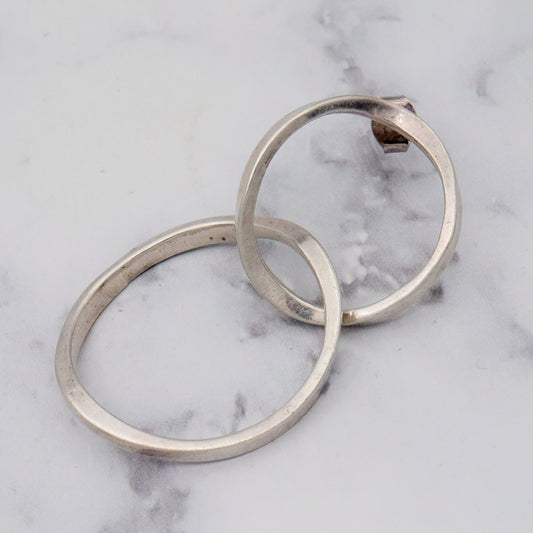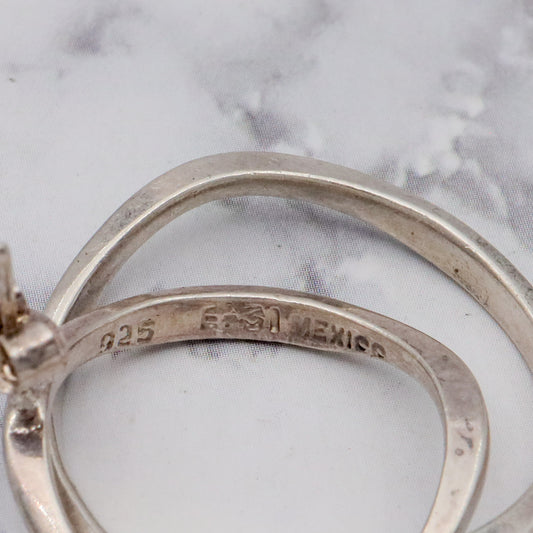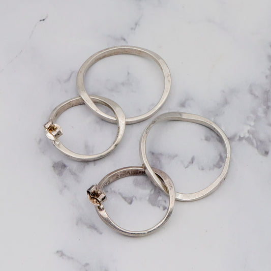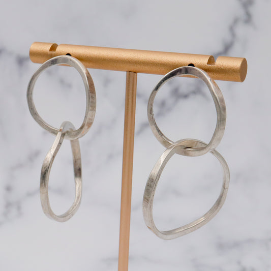 Vintage Mexican Modern large hammered sterling interlocking circle drop earrings