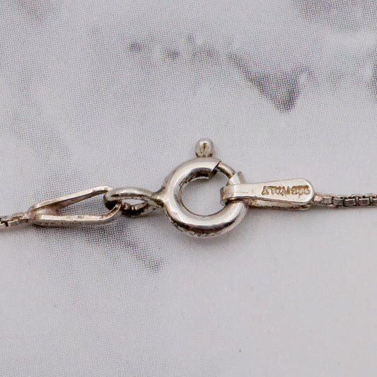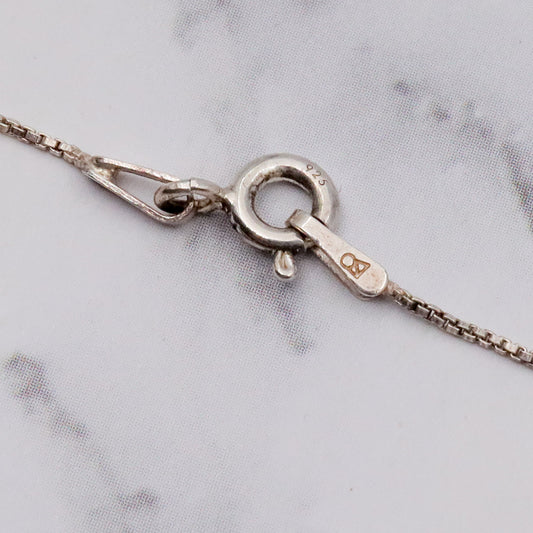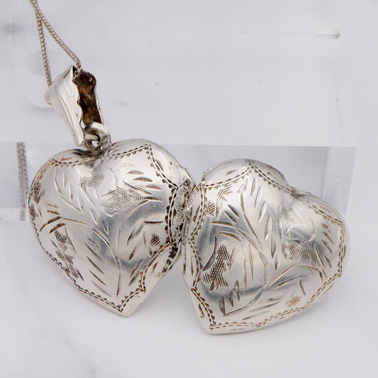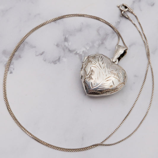 Vintage engraved sterling heart locket pendant on a box link necklace chain, 19”