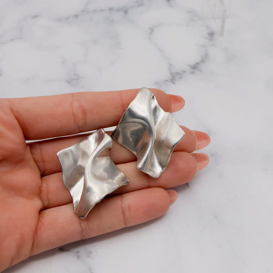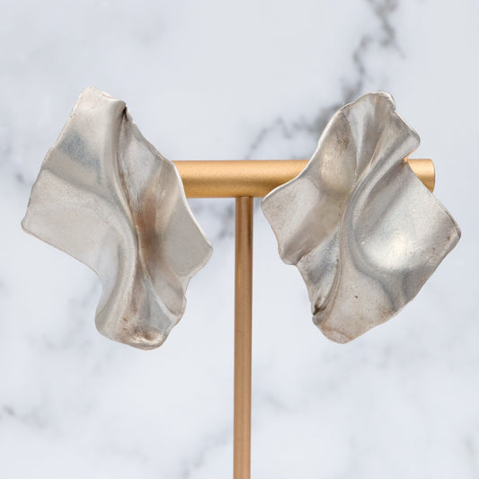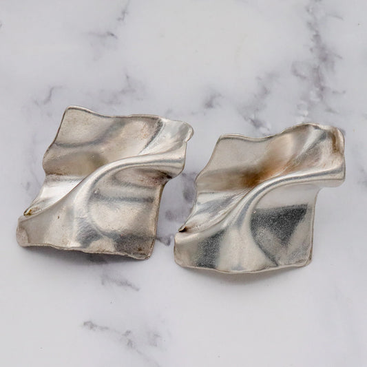 Vintage Modernist handmade sterling trompe l'oeil earrings with 14k gold posts