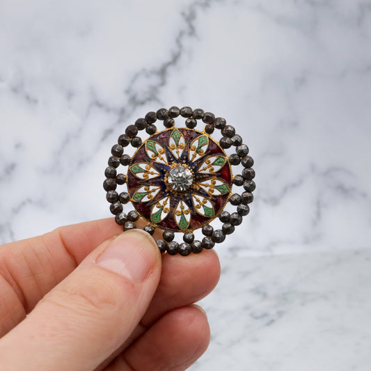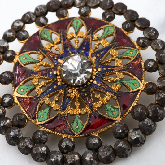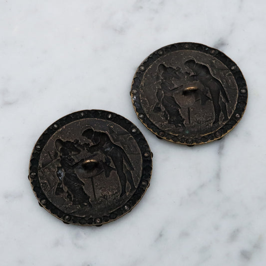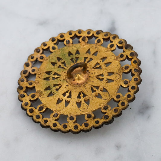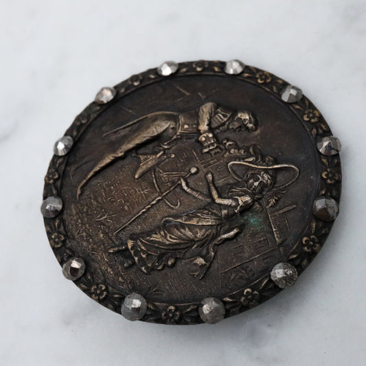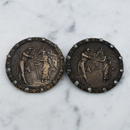 Pair of large Antique French Victorian Fop brass picture buttons w/cut steel