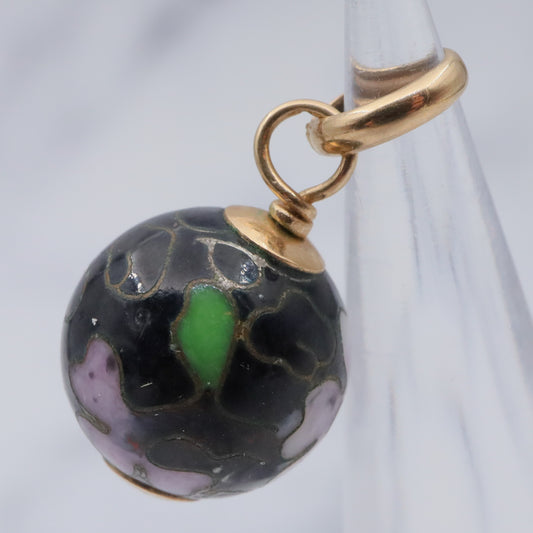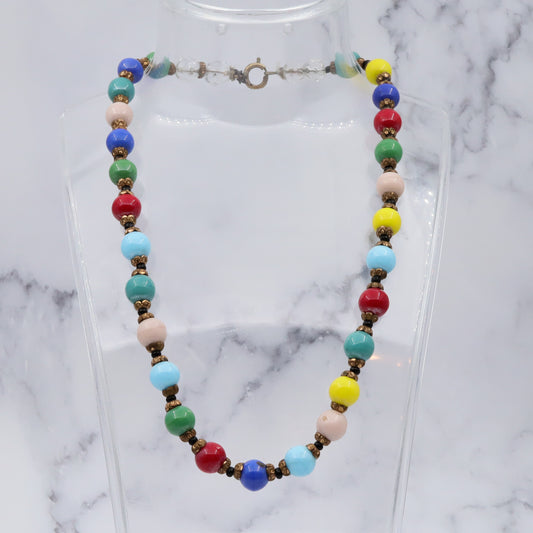 Antique rainbow glass beaded necklace with brass spacers, 16.5"