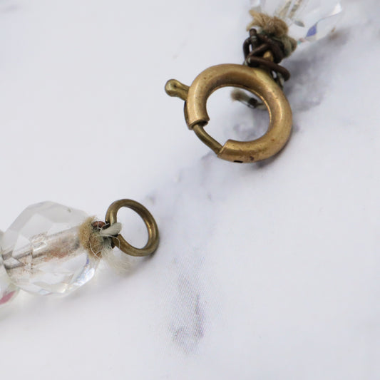 Vintage Austrian watermelon crystal bezel set brass necklace, 46”