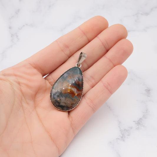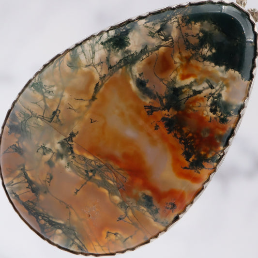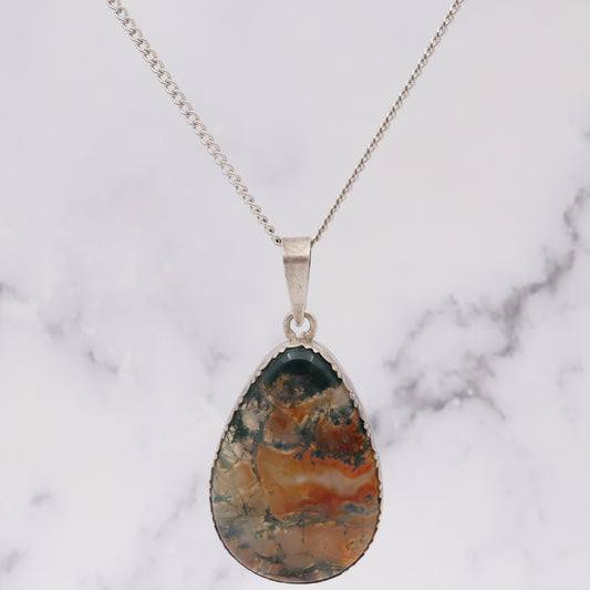 Antique sterling & moss agate pendant