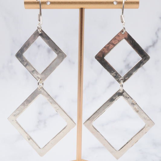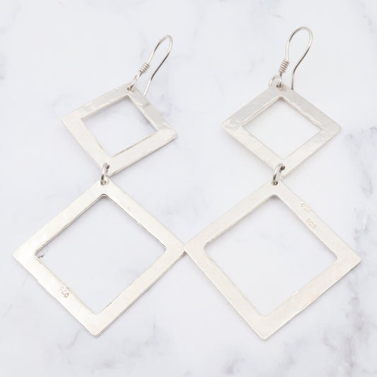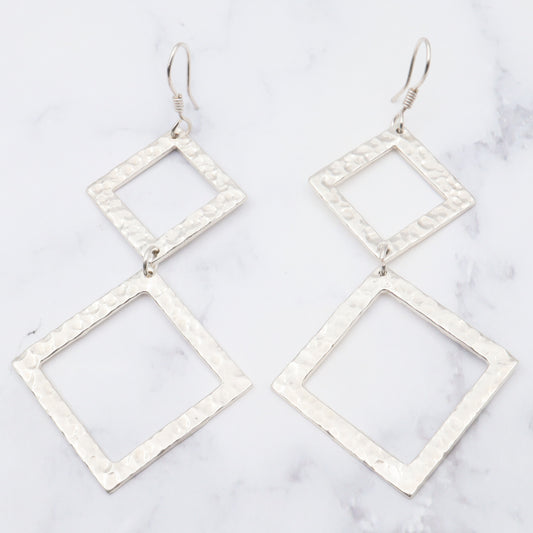 Vintage modern hammered sterling drop earrings