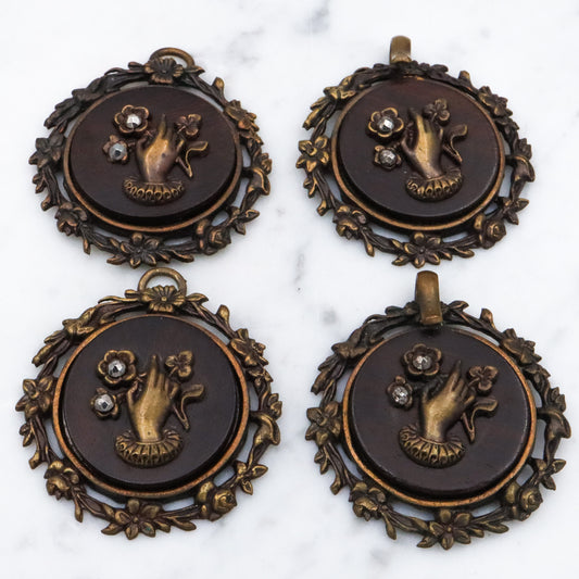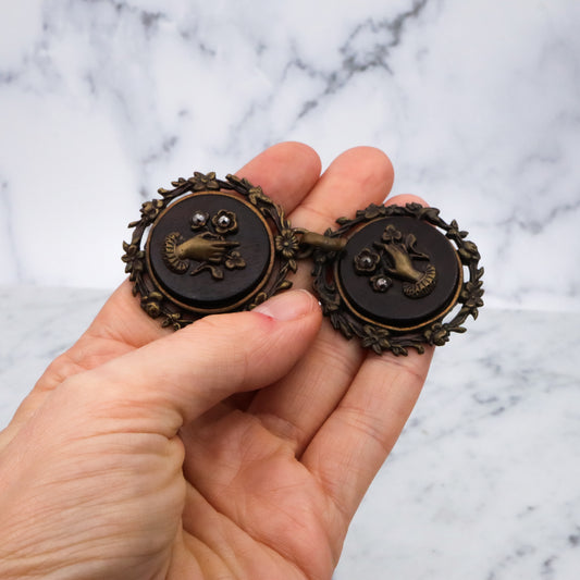 Group of two Antique Victorian brass, wood, & cut steel buckles