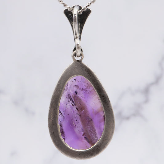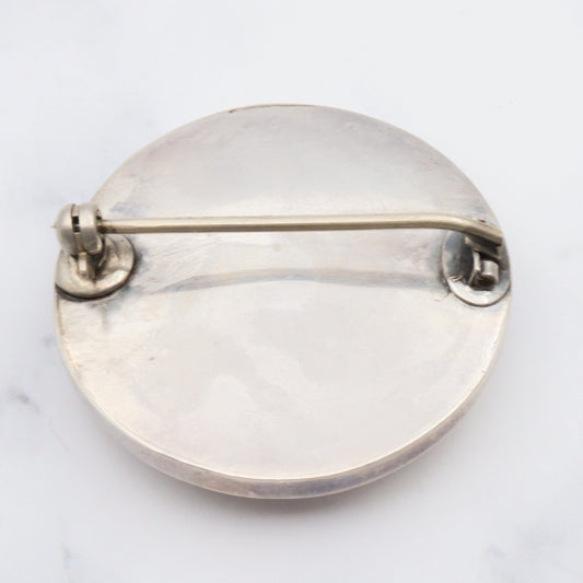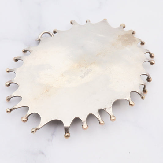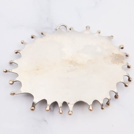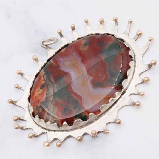 Vintage 1975 English brutalist sterling silver moss agate gilt accent pendant