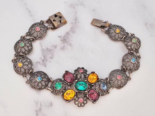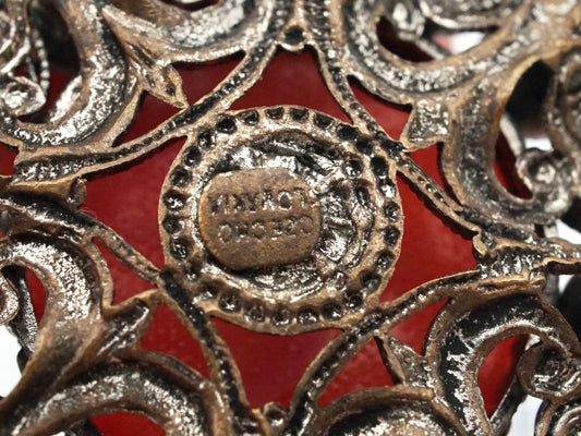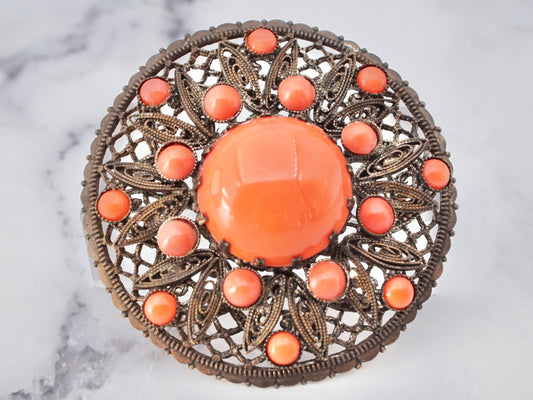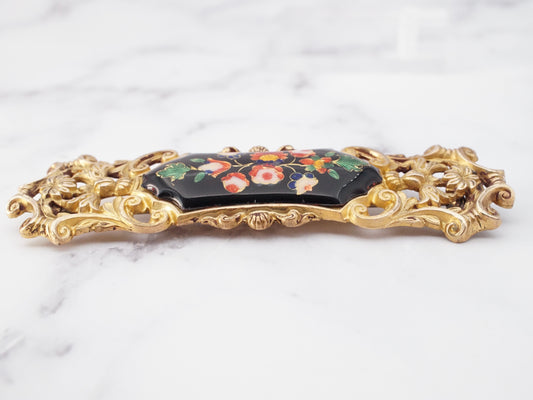 Large antique gilt and metallic cloisonne enamel plaque brooch