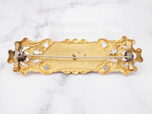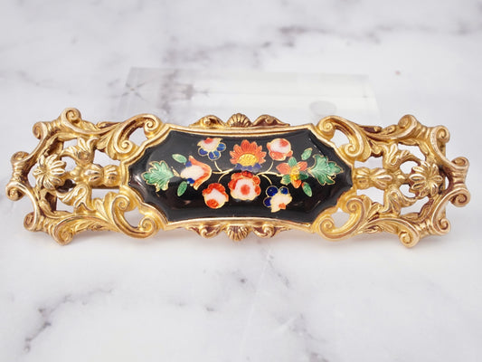 Antique Victorian gold filled and hand-painted guilloche enamel brooch