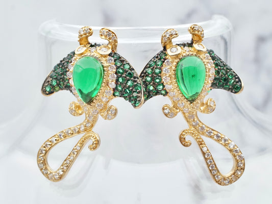 Vintage gold plated sterling and Swarovski crystal stingray earrings