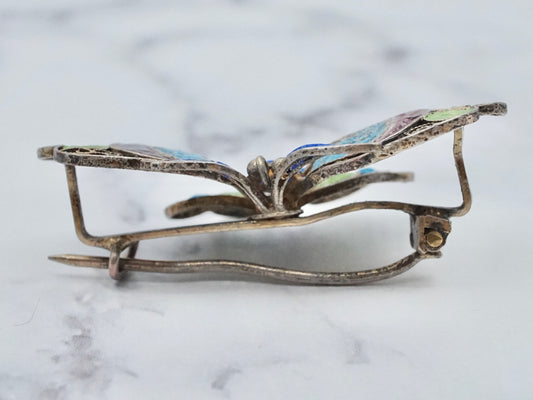 Vintage Italian gilt sterling filigree plique-á-jour enamel butterfly brooch