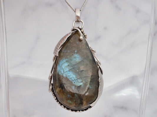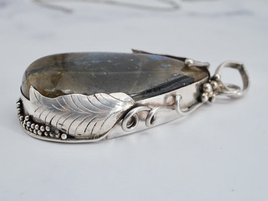 Vintage large Indian sterling & labradorite pendant