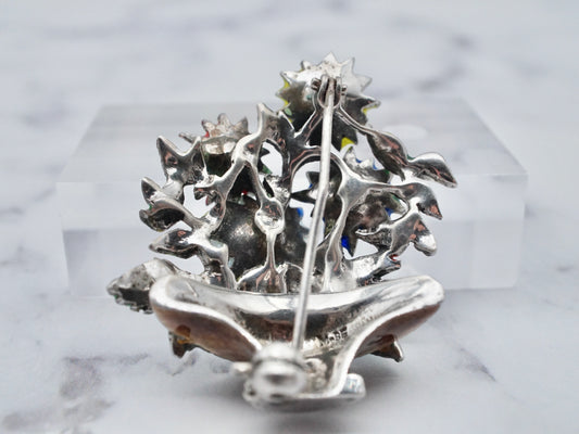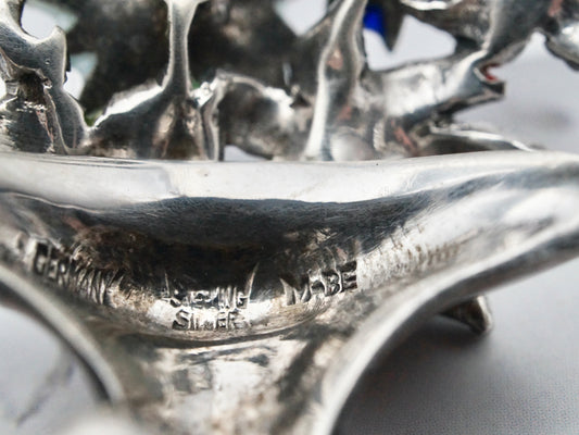 Vintage German sterling enamel and marcasite Alice Caviness brooch