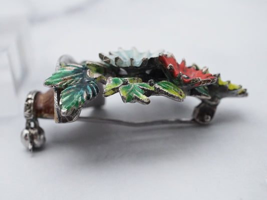 Antique German sterling, enamel, & marcasite Maison Behar Co. floral brooch