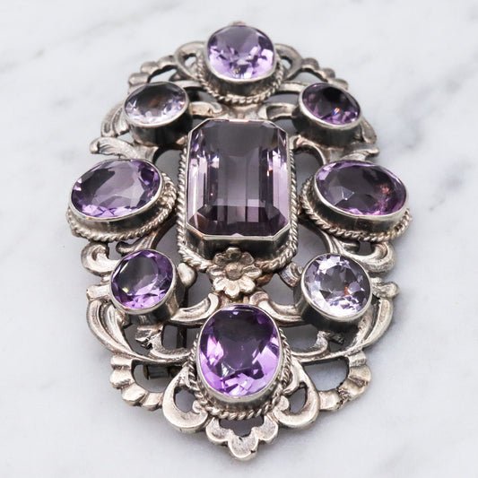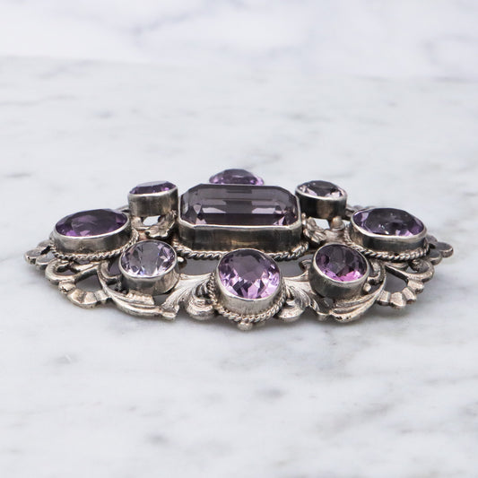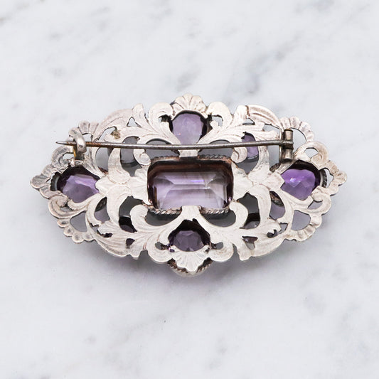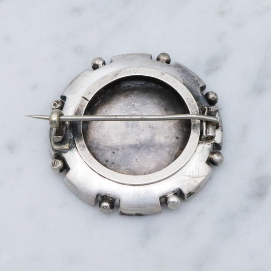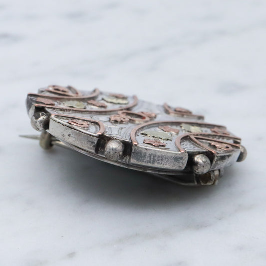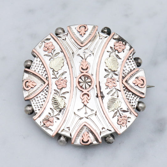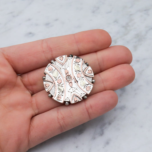 Antique Victorian Aesthetic sterling silver mixed metals rondel brooch