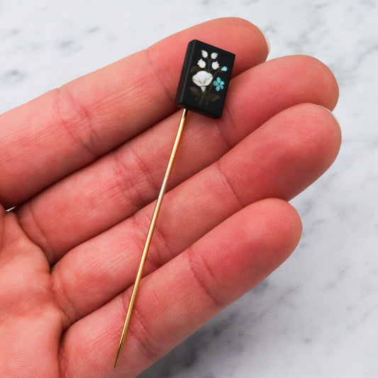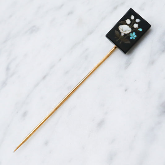 Antique Victorian gold filled Italian pietra dura plaque stick pin