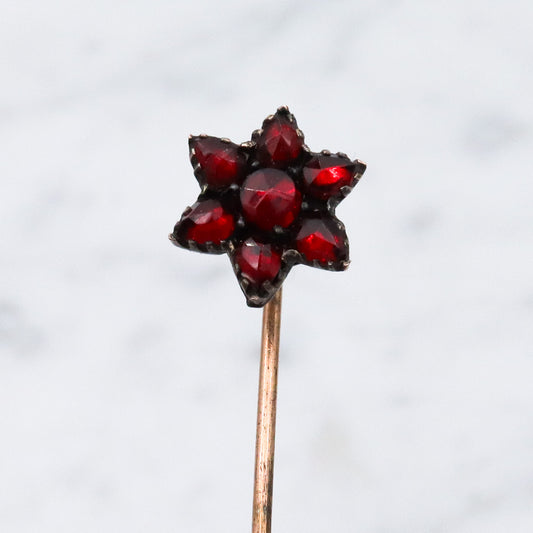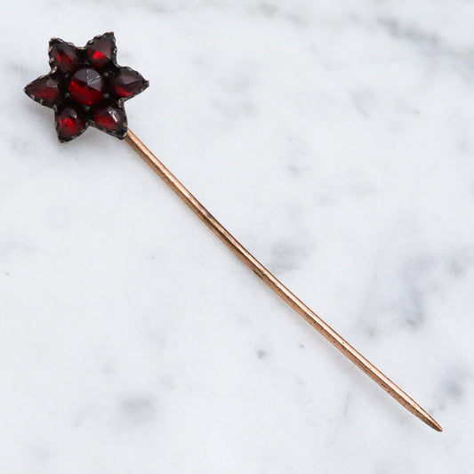 Antique Victorian gold filled Bohemian rose cut garnet flower stick pin