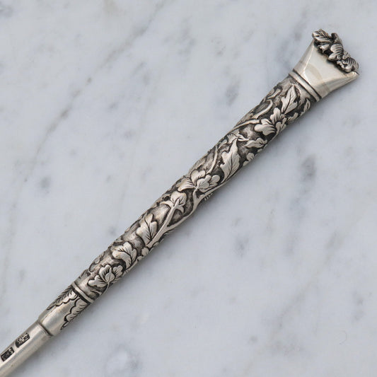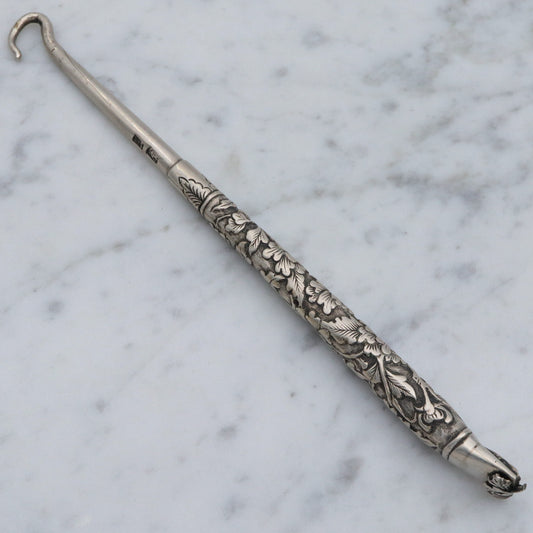 Rare Victorian Chinese export silver Chrysanthemum button hook