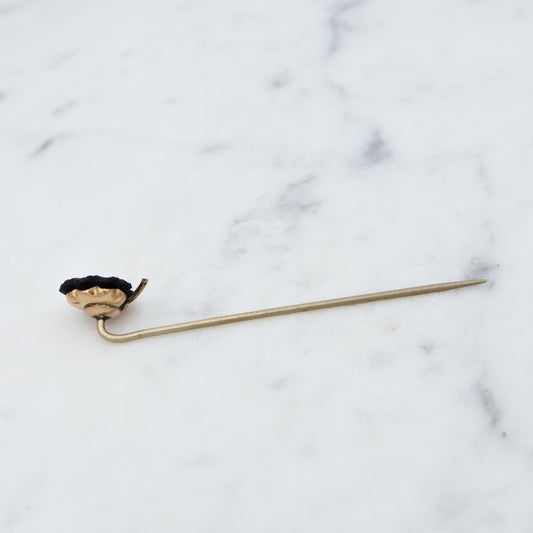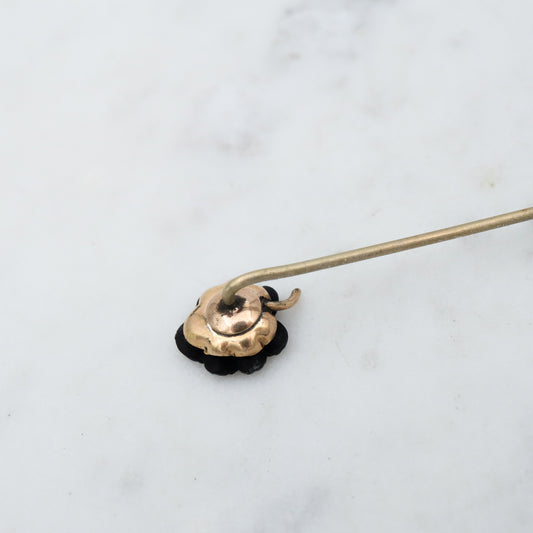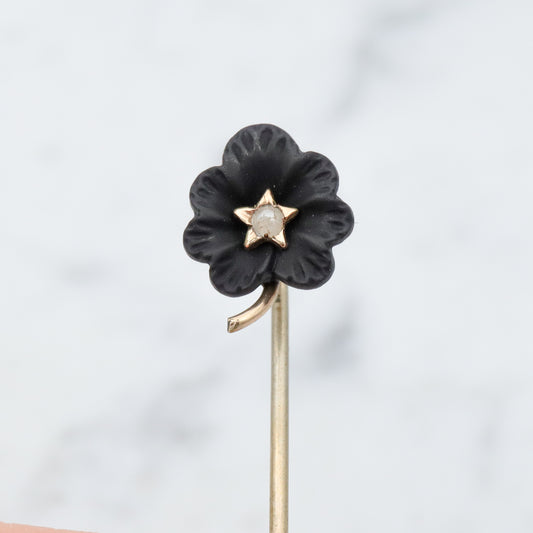 Antique Victorian carved Whitby jet flower gold filled stick pin