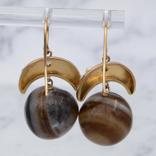 Antique Victorian 14k gold Scottish banded agate orb & rose cut diamond earrings