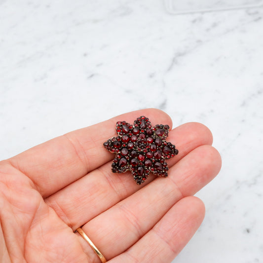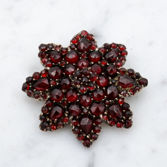 Antique Victorian Bohemian rose cut garnet gold filled brooch