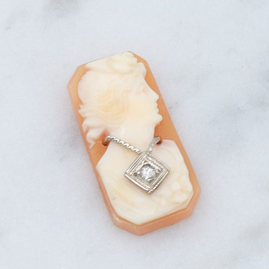 Antique Victorian loose shell cameo with 14k white gold diamond necklace