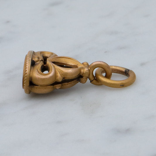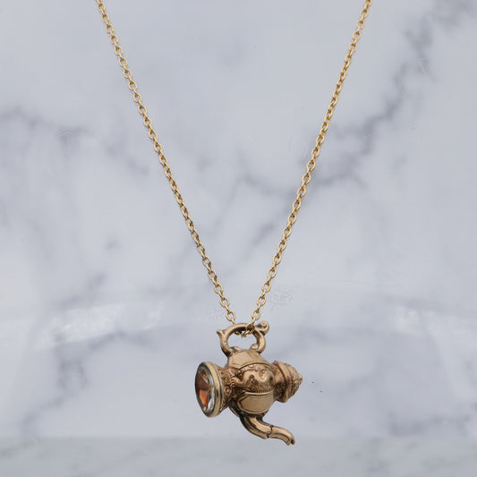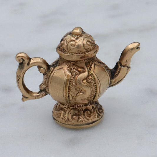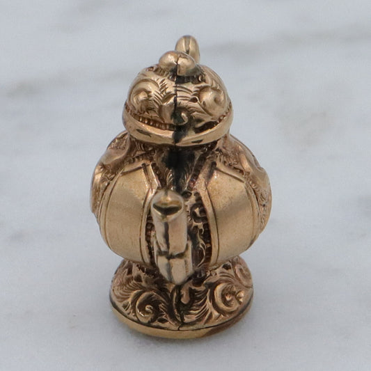 Antique Victorian repousse rolled gold & citrine figural teapot fob pendant