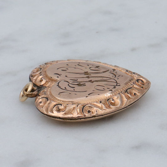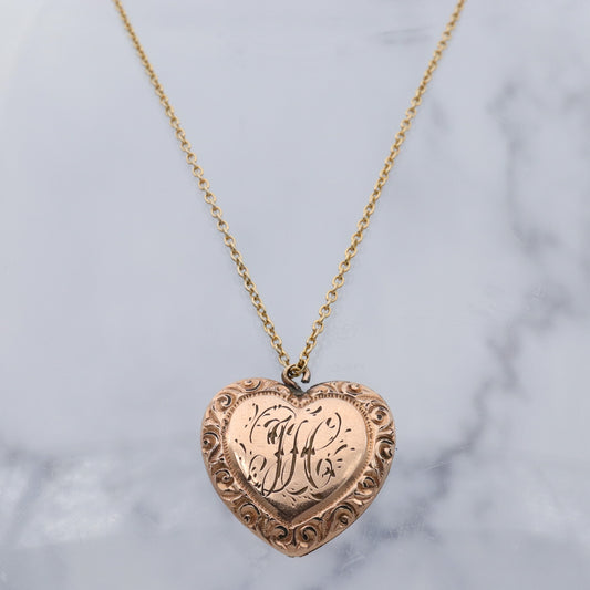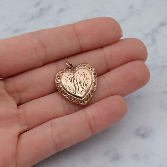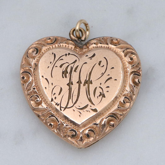 Antique Victorian gold filled repousse heart pendant with “HC” monogram