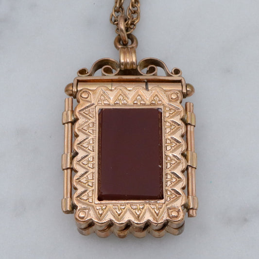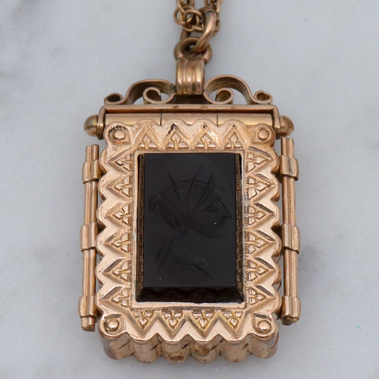 Antique Victorian gold filled, double sided intaglio locket necklace