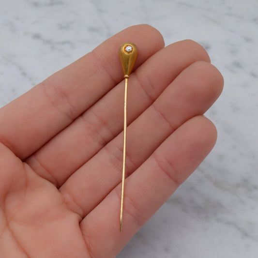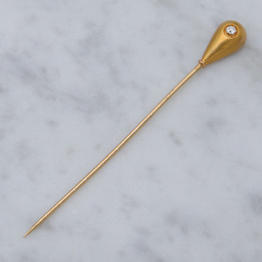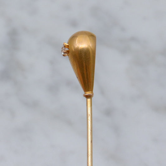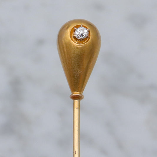 Antique Victorian H.A. Kirby 14k gold & old mine cut diamond stick pin