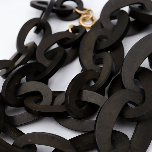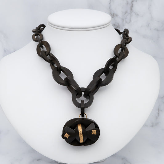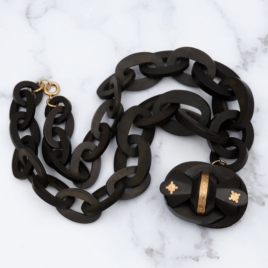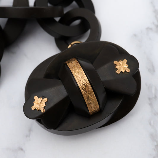 Antique Victorian gutta percha large link necklace with gold overlay