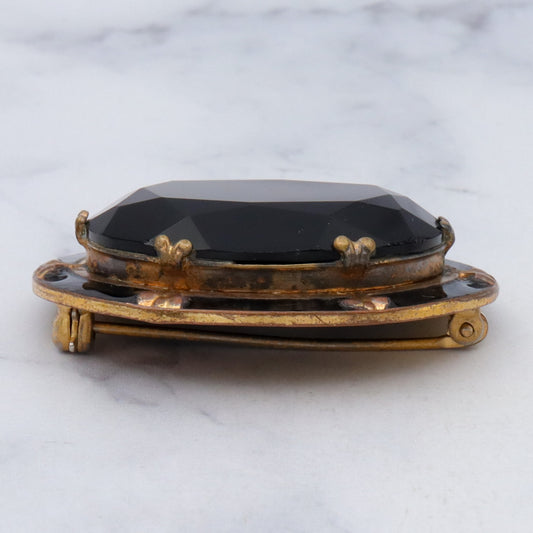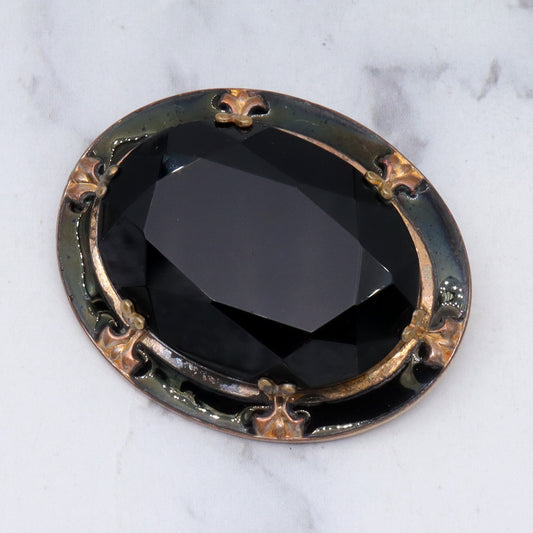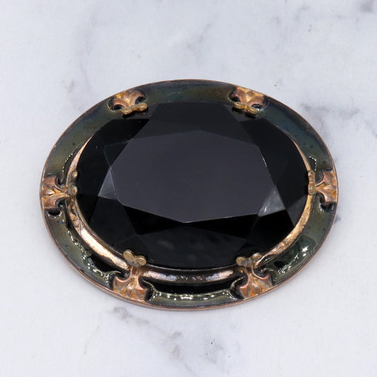 Antique Victorian faceted jet glass, enameled brooch