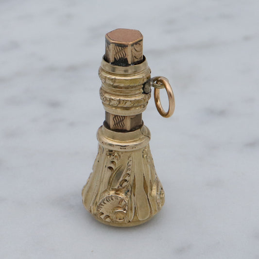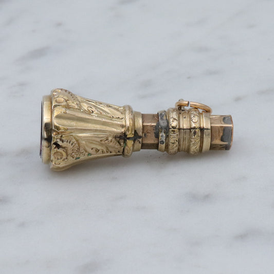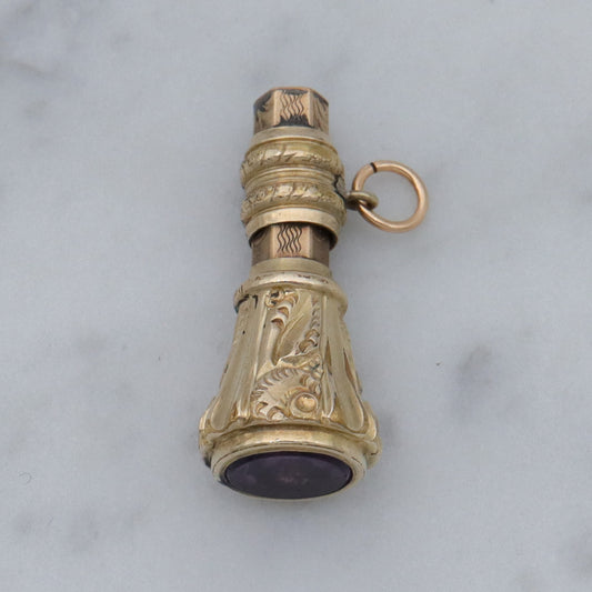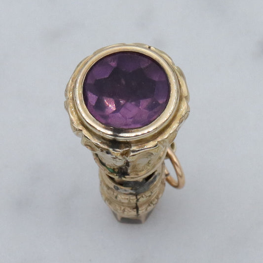 Antique Victorian repousse rolled gold & faux amethyst fob pendant