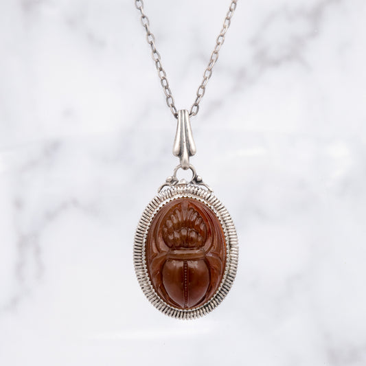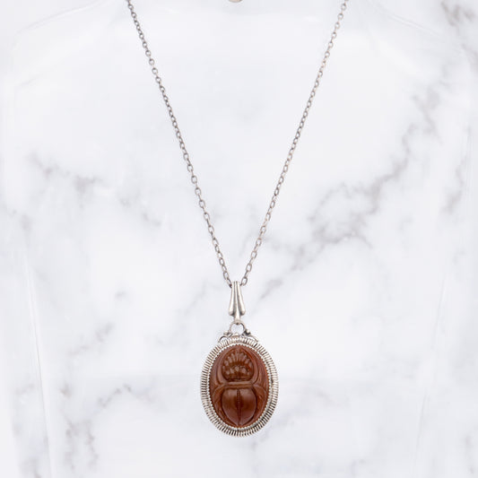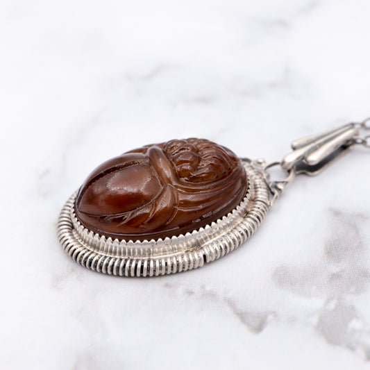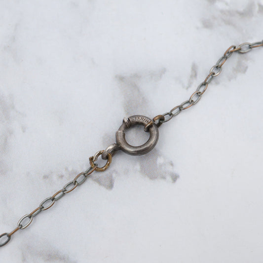 Antique Victorian fine silver filigree & faux tortoiseshell pendant on a 19” curb link necklace chain