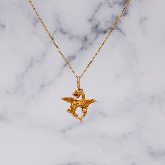 Antique Victorian 14k gold & pearl griffin stick pin converted pendant