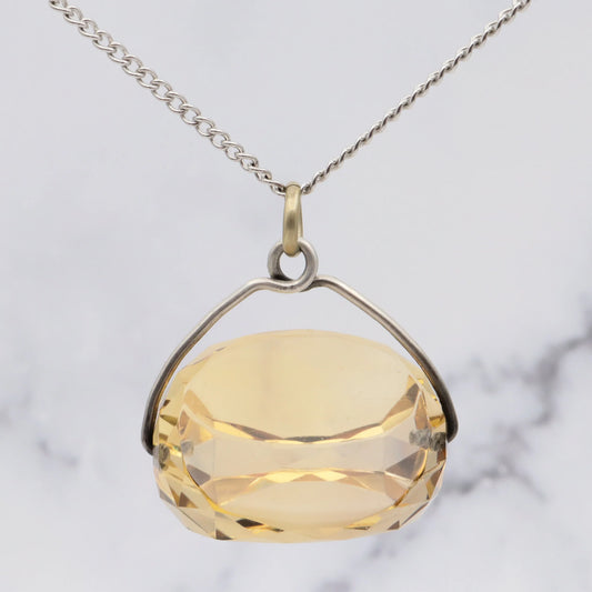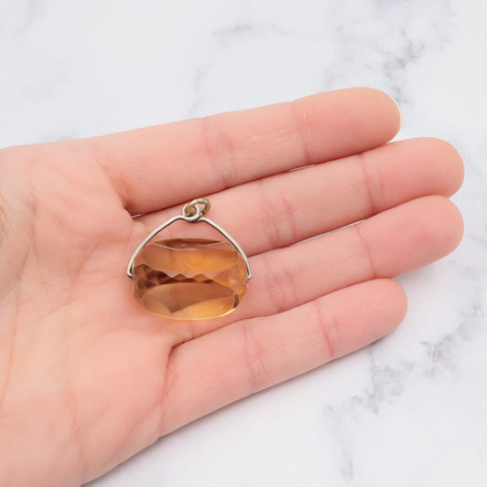 Antique Victorian faceted citrine spinning signet fob with sterling silver wire
