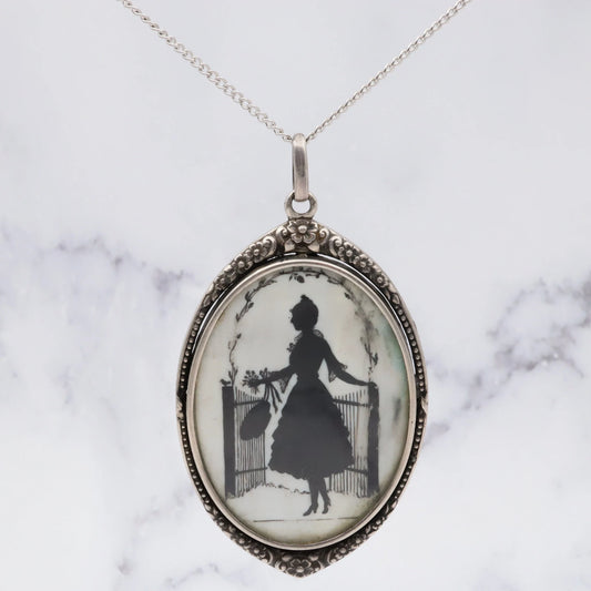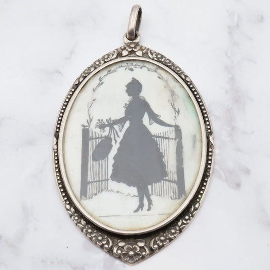 Antique Victorian sterling hand painted silhouette portrait pendant