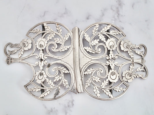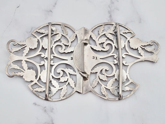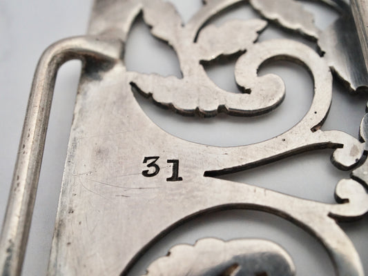 Victorian 1899 John Milward Banks of Birmingham sterling hand engraved large two piece buckle