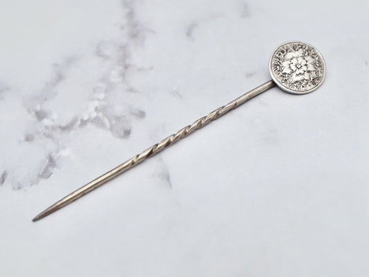 Antique Victorian gilt metal and glass peacock eye stickpin