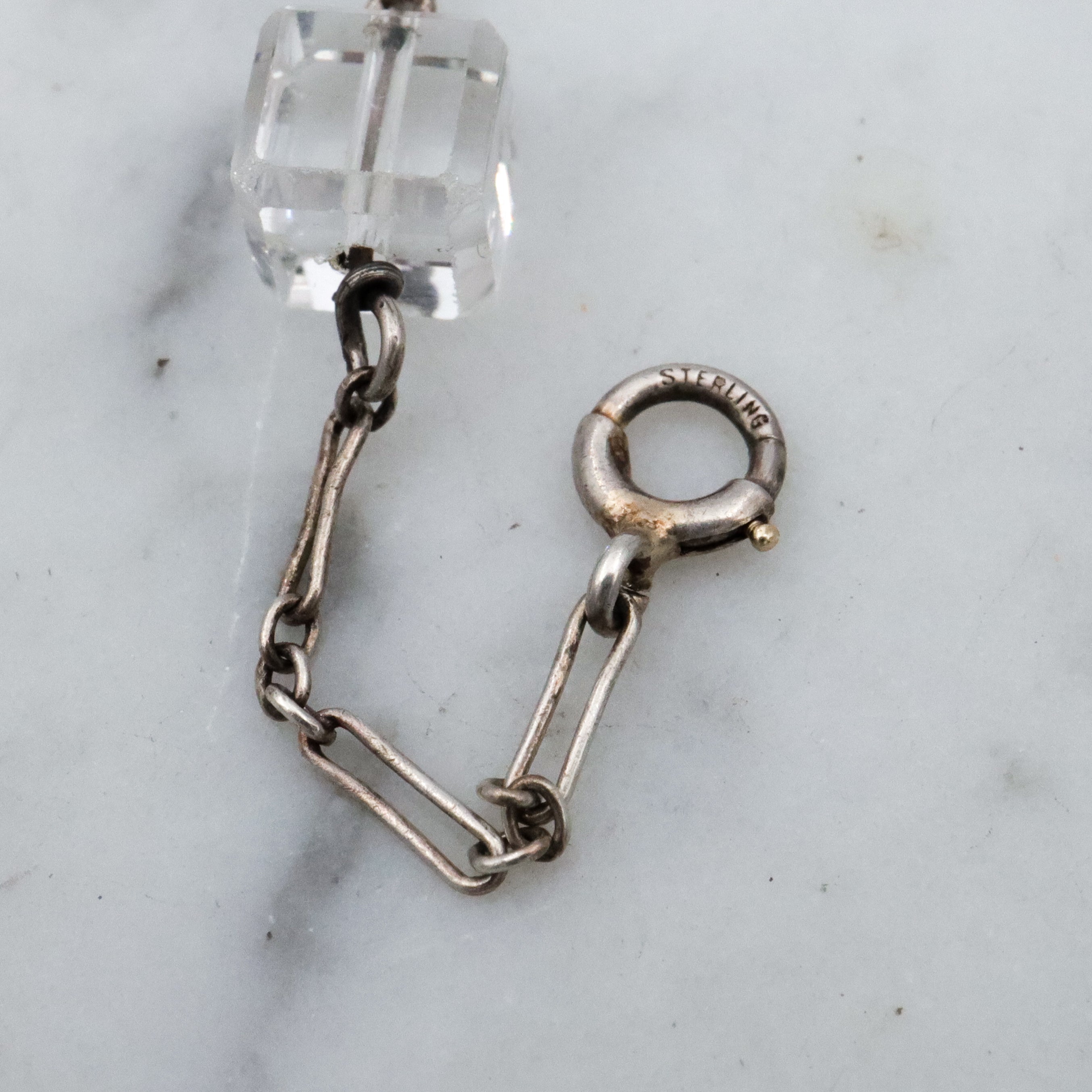 Antique Art Deco rock crystal block bead sterling link bracelet