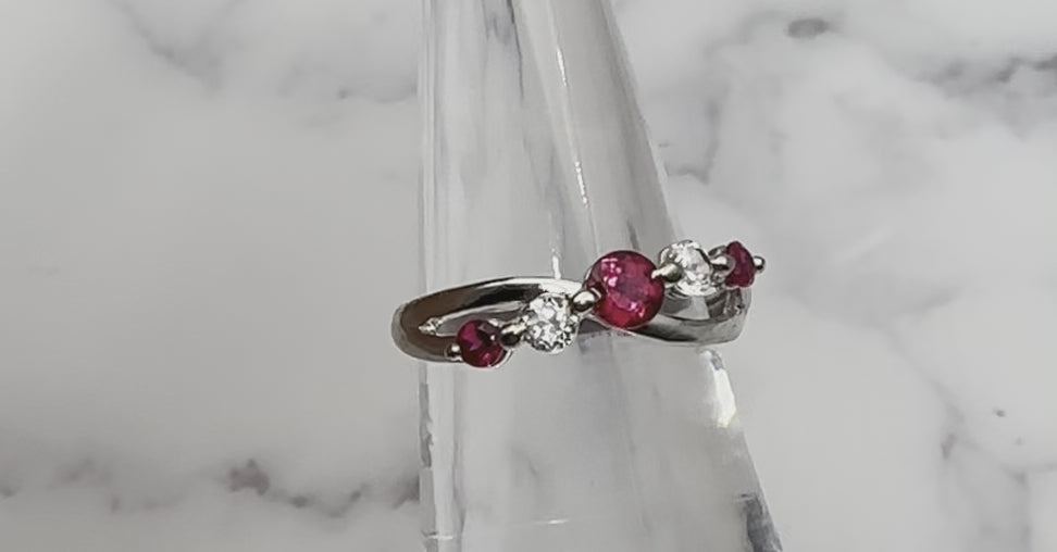Vintage 10k white gold simulated ruby and cubic zirconia ring, size 6.5