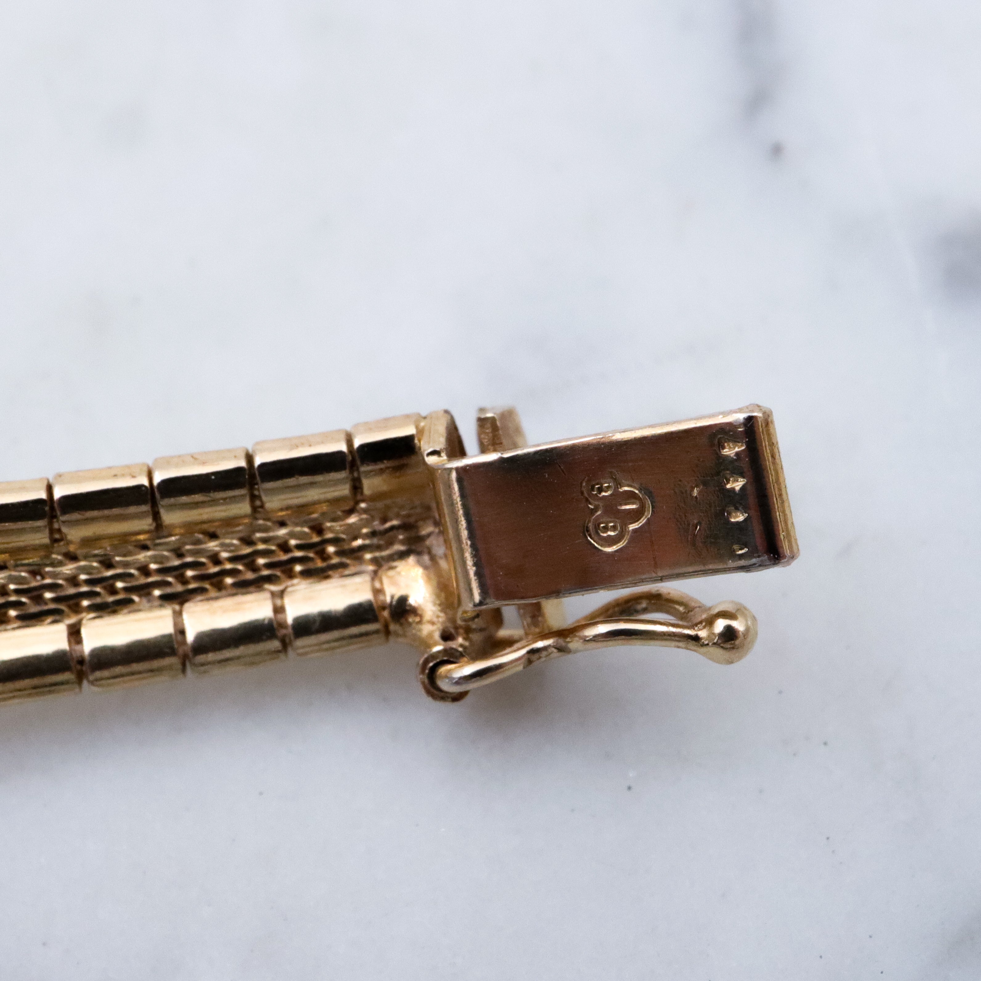 This retro chunky necklace was made in Italy, signed "BIB", and features a 6mm gold plated sterling silver chevron designed omega link chain with a hidden box clasp.